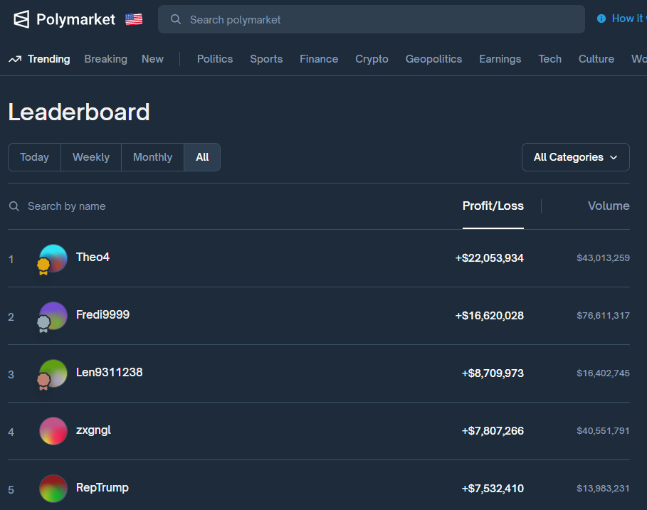 Top traders make a lot of money in prediction markets. Both Polymarket and Kalshi have public leaderboards where you can see the millions top traders have stacked up.