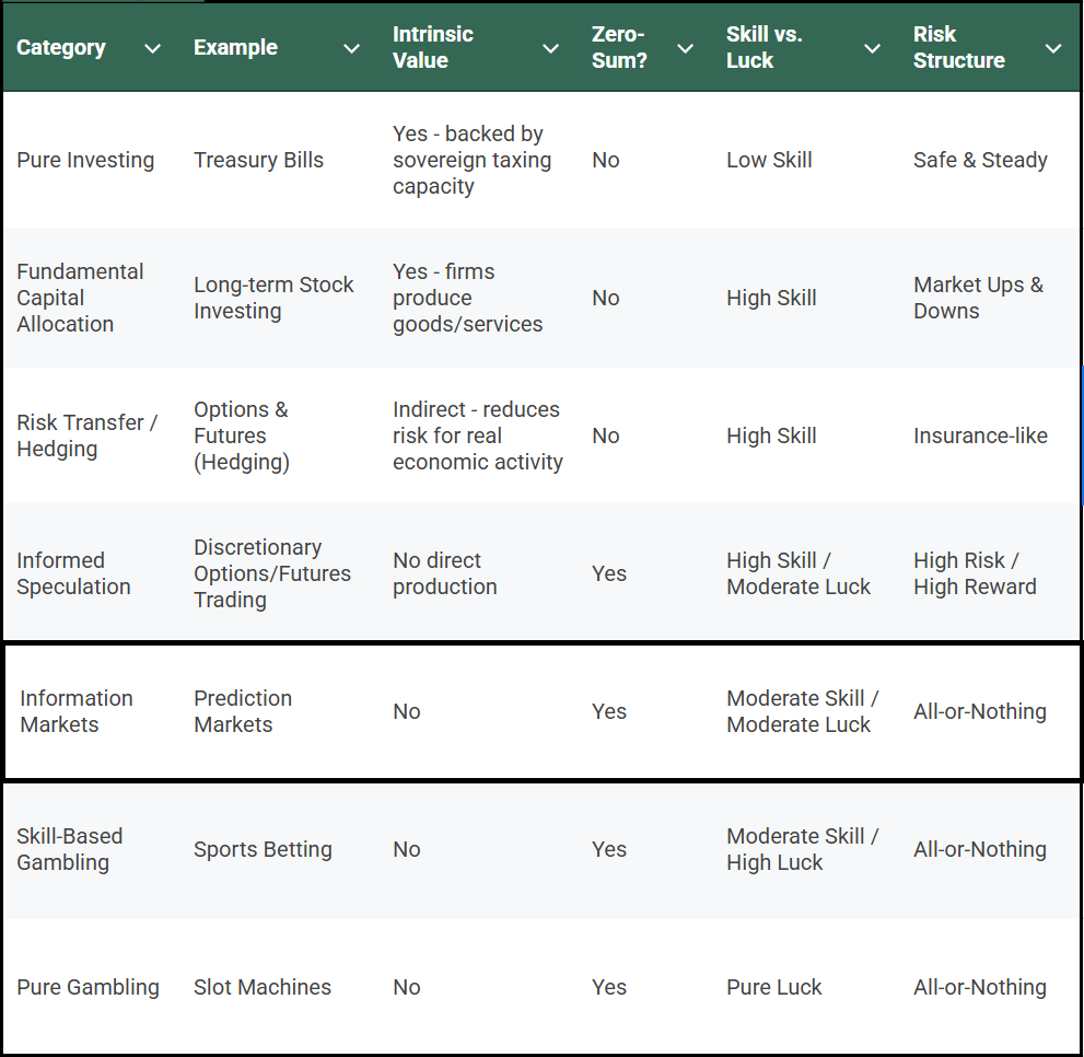 The verdict? Becuase they are binary and zero-sum, prediction markets lean toward gambling.